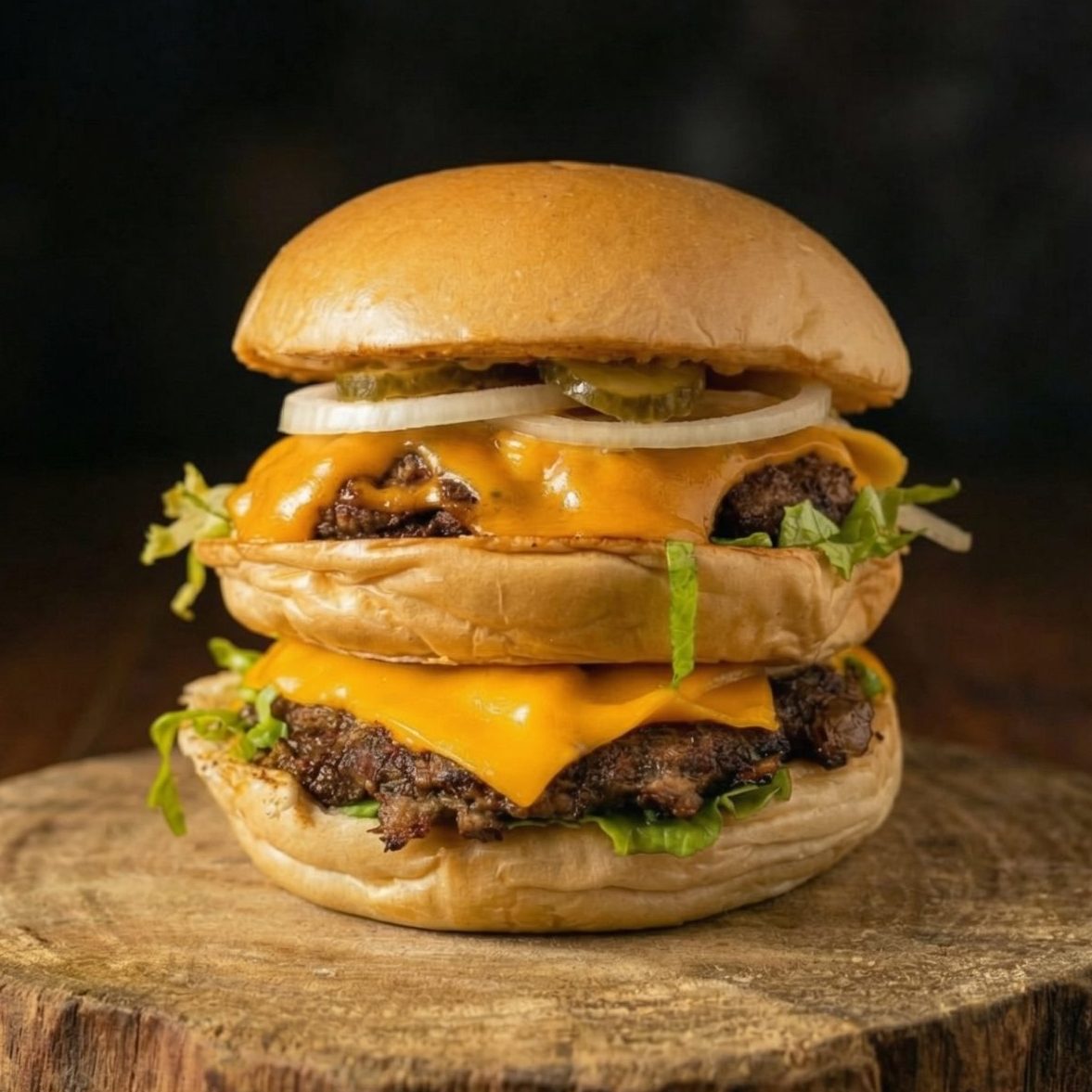 Doble carne de 100g, doble queso cheddar, pepinillo, lechuga, cebolla y la salsa Big Abuelos.
